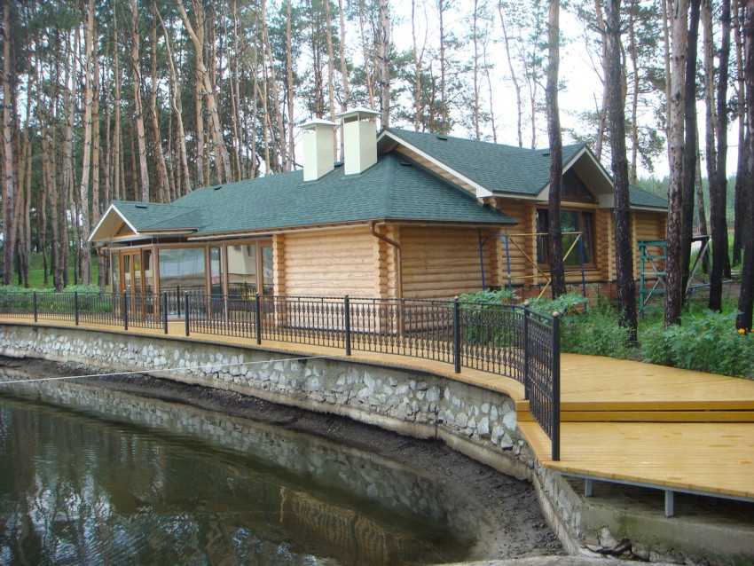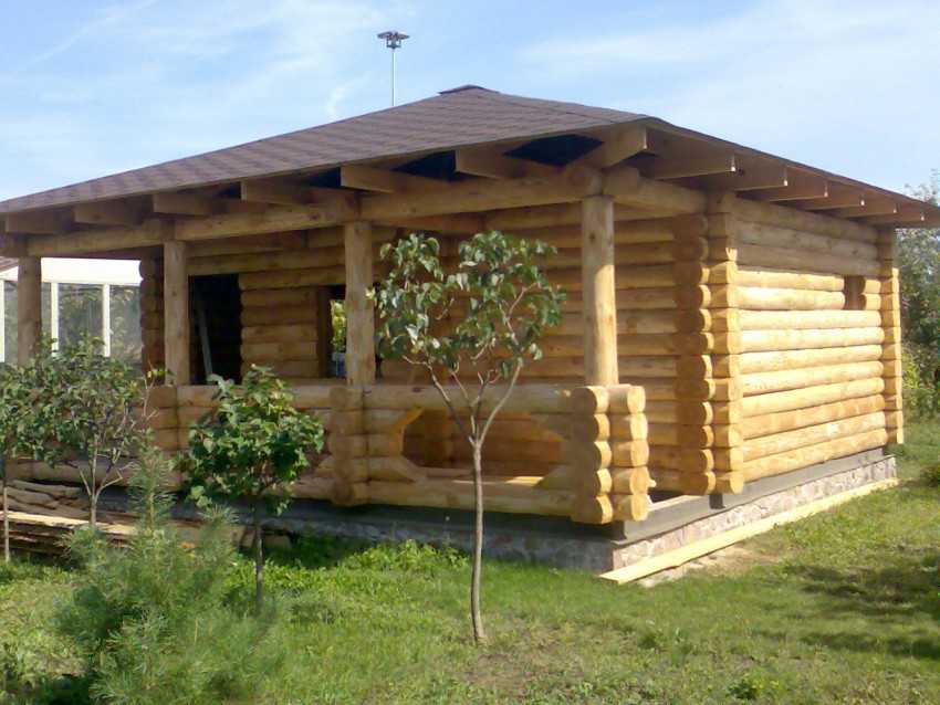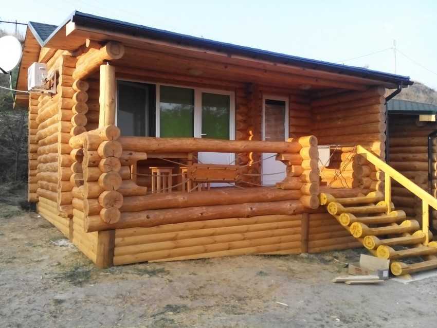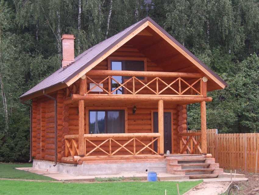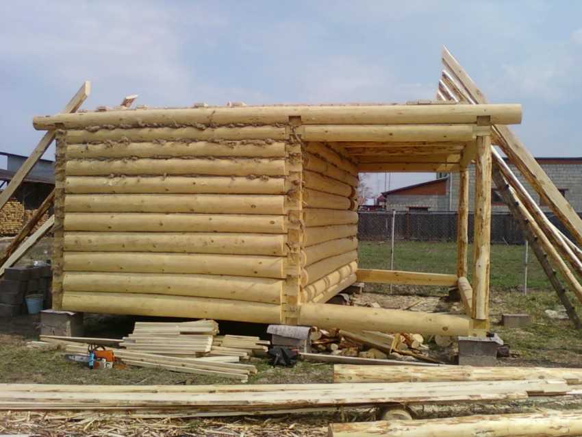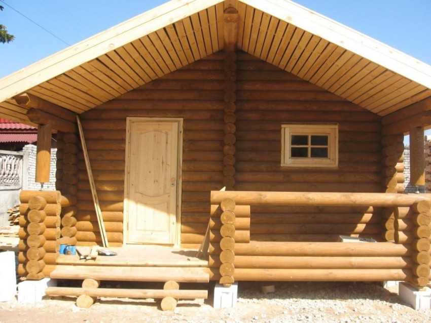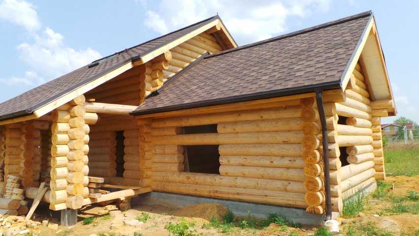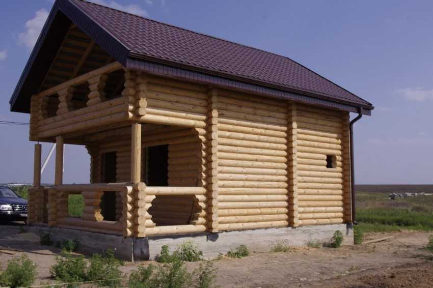 Можно сделать обрешетку под металлочерепицу, тогда меньше дождевой воды попадет на дерево. Для веранды ставят лифты для сокращения усадки под подпорные столбы.