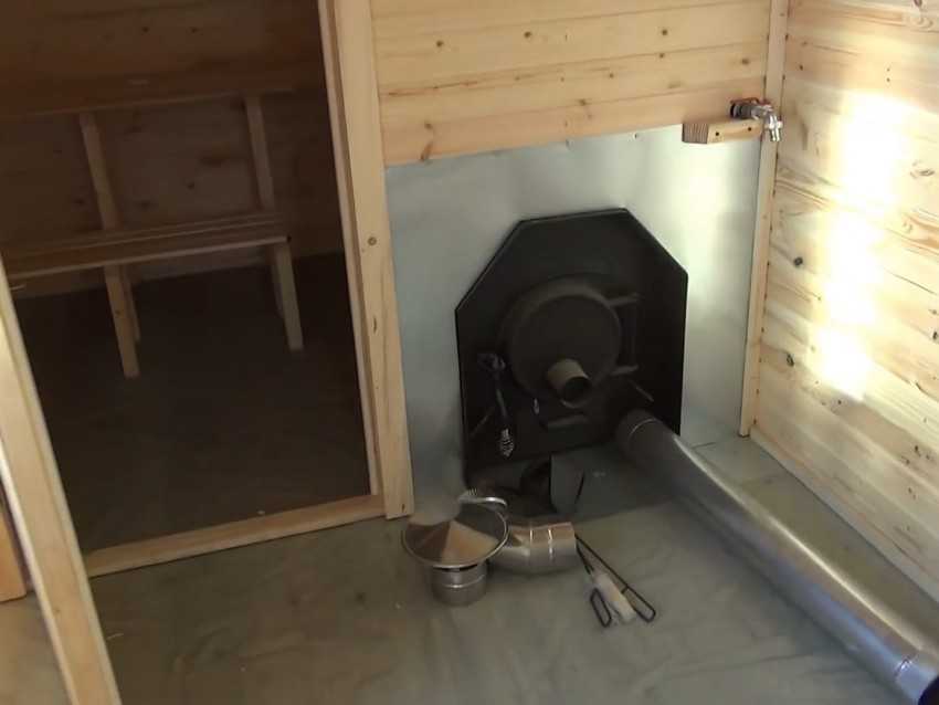 Второй тип печки отличается открытой каменкой. Т.е., камни находятся снаружи и на них для получения пара поддается вода.