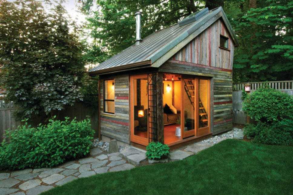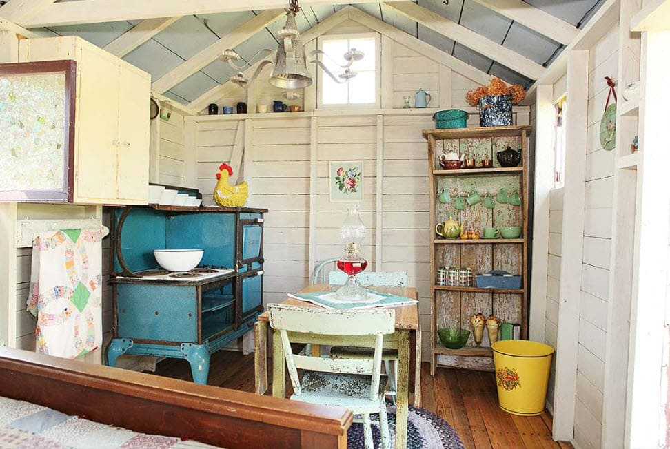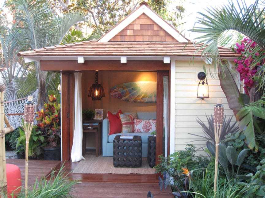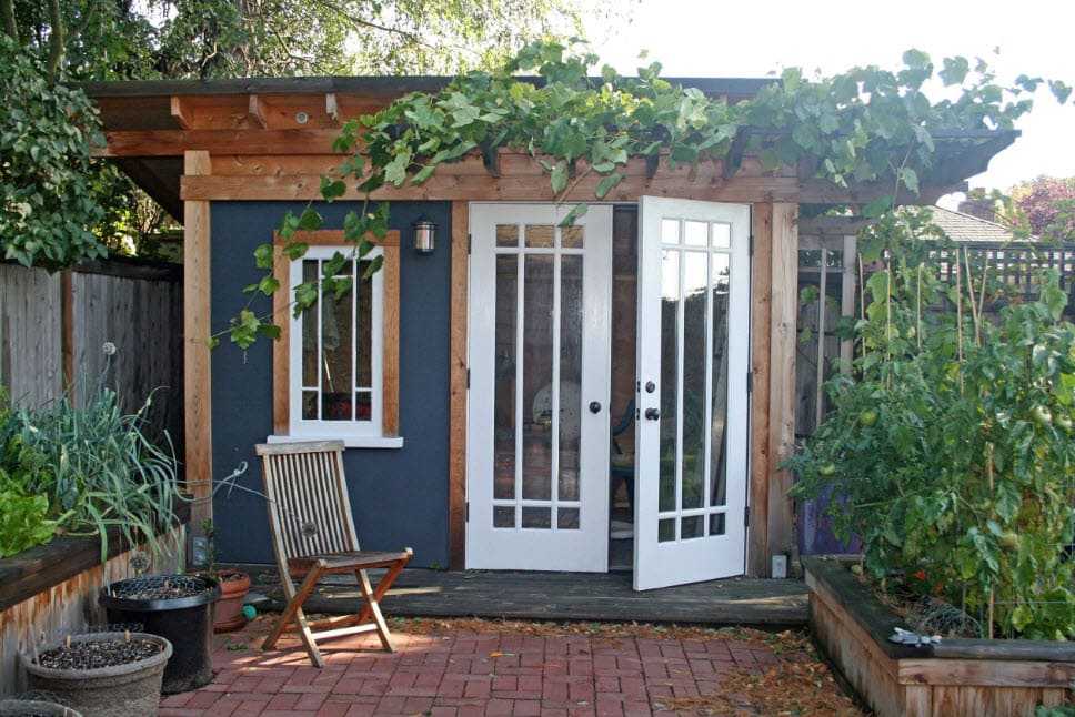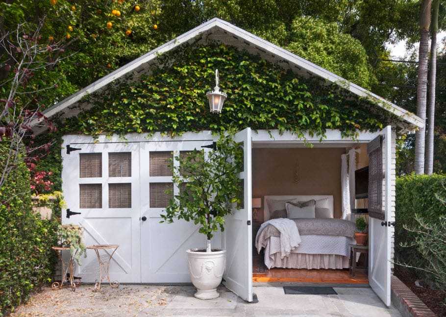 - Если размеры хозблока позволяют, в нем даже можно оборудовать полноценную комнату. Это может быть летний вариант для ночевки или размещения гостей;