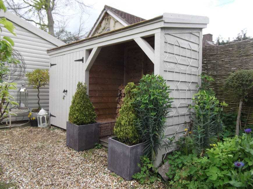 Если на дачных просторах хозблок будет совмещен с дровяником, то важно выбирать материалы, устойчивые к плесени и коррозии. Желательно, чтобы их характеристики были как можно ближе к древесине
