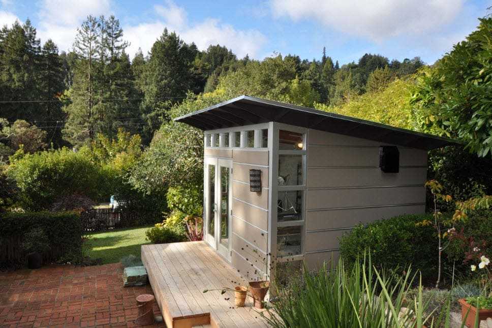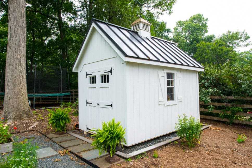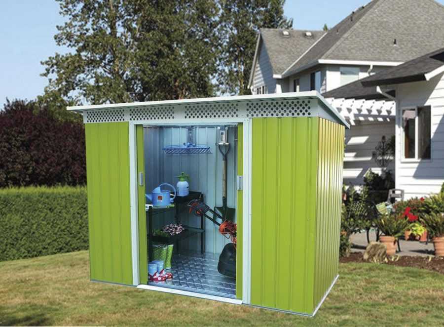 Конструкция сарайного типа предназначена для хранения садового инвентаря и собранного урожая. Она может быть выполнена из дерева или металла. Первый вариант является менее долговечным, поскольку материал более восприимчив к негативному воздействию природных факторов окружающей среды. Металлический хозблок для дачи является идеальным решением для хранения различного садового инвентаря.