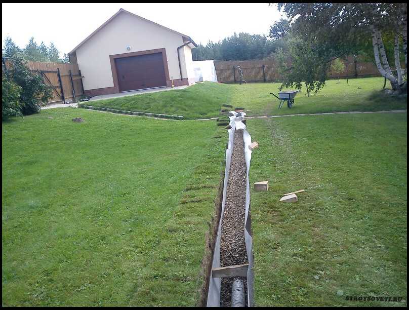 - водоотвод с самой нижней точки территории, что предотвратит скопление влаги.