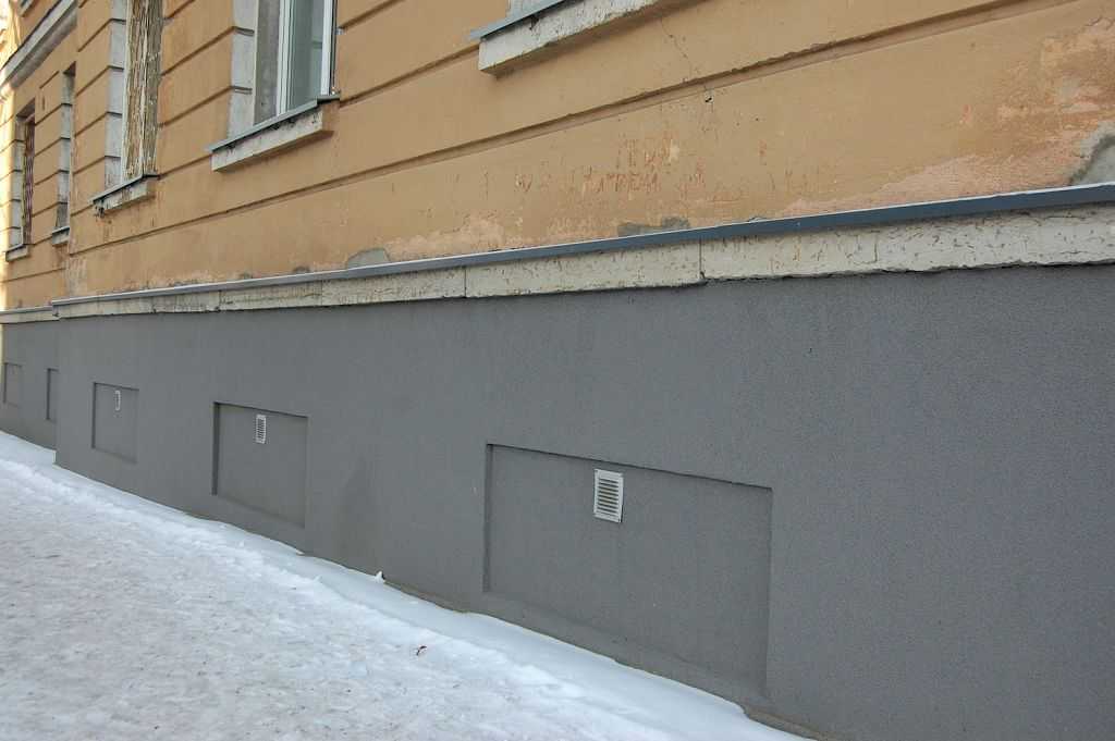 - Производится черновая отделка цоколя с целью выравнивания его поверхности;