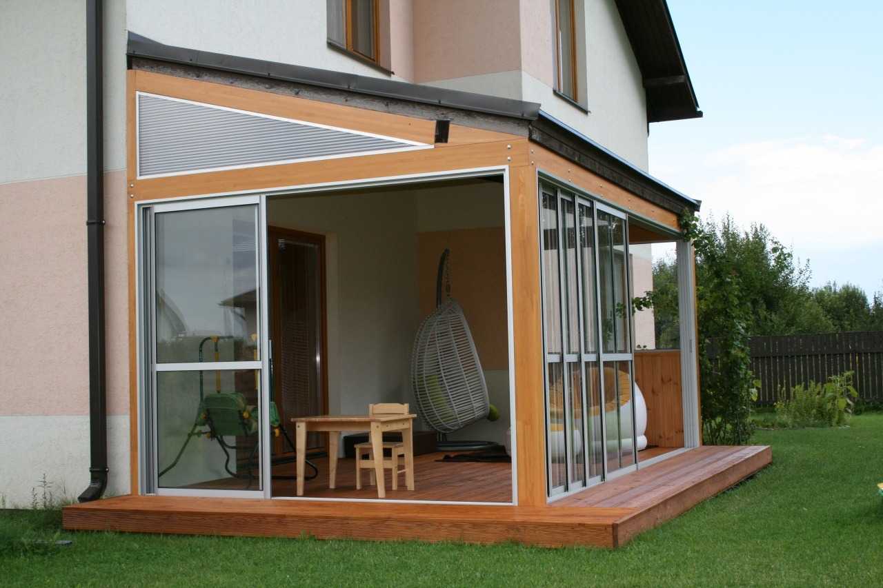 Выбор оптимальной технологии, ее цена зависит от того, планируется ли отопление. Самый дорогой метод – панорамное остекление террасы и веранды, включающее стеклопакеты, деревянные рамы