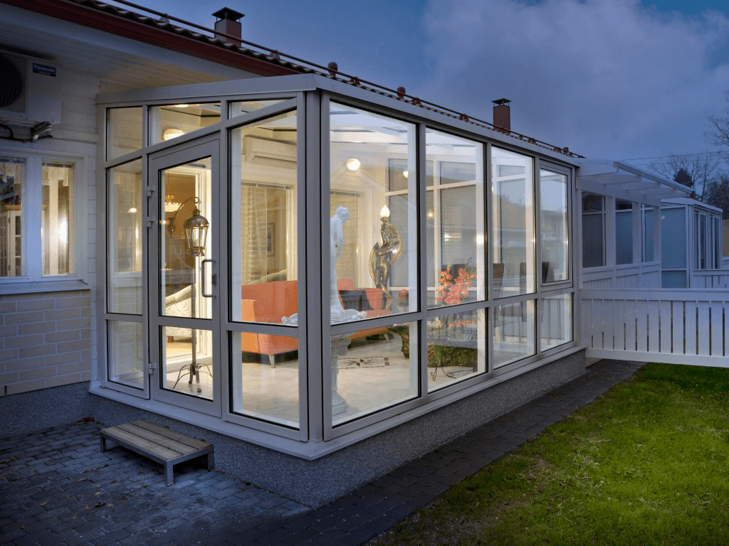 Днем прозрачные стены и крыша обеспечат неограниченный доступ солнечного света. Вы почувствуем это особенно зимой. И не только потому, что помещение, утепленное солнечным светом, не нужно интенсивно прогревать. Полностью застекленные веранды естественным образом освещаются со всех сторон, а не, как в случае с окнами, только в определенное время дня. В короткие зимние дни такое место перестает служить только вестибюлем. Веранда станет круглогодичной террасой или мини-зимним садом, где каждый день вы можете расслабиться и насладиться прелестями природы вокруг дома.