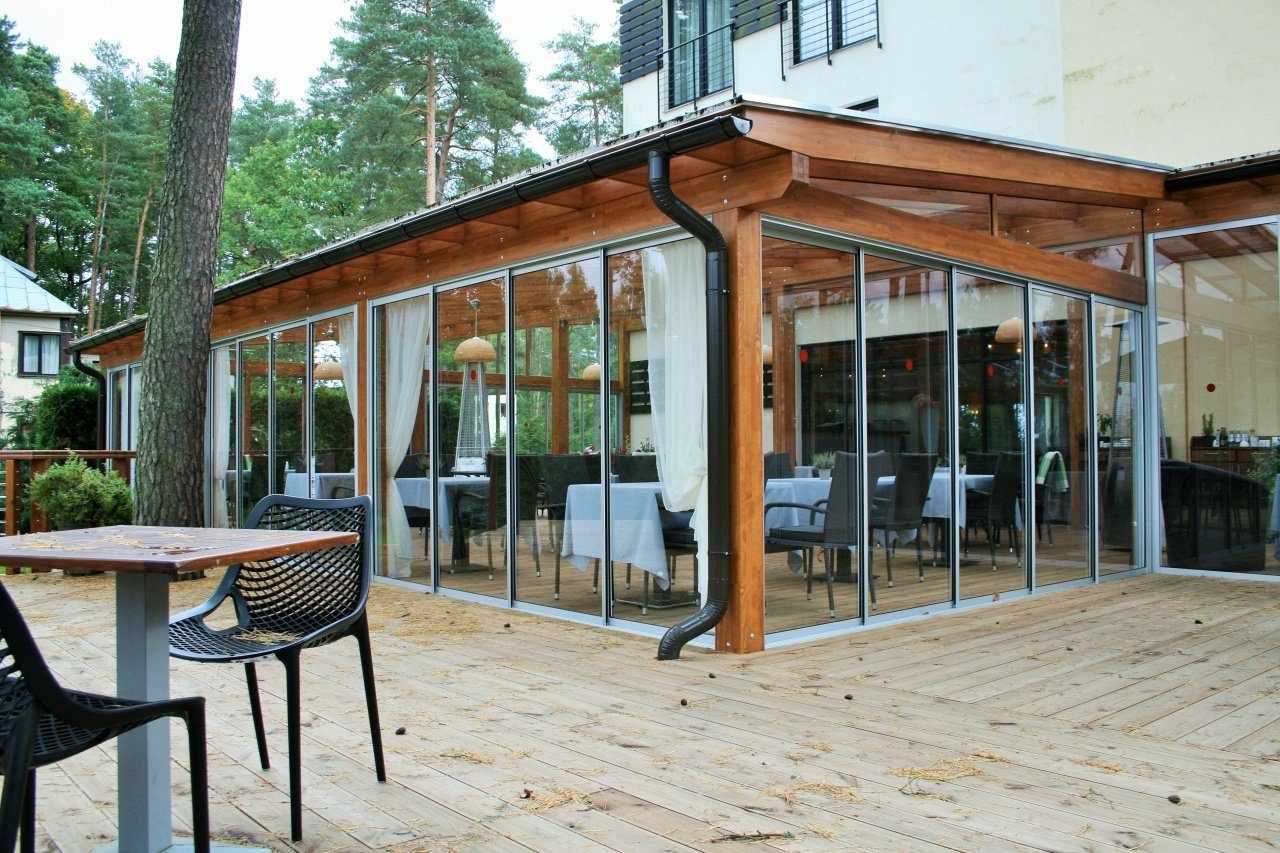 Застекленные здания — это пространство, которое можно успешно использовать в качестве беседки. В холодный или дождливый день вы вместе с друзьями всегда будете там хорошо проводить время. Это отличное место для вечерних встреч, где можно спрятаться за невидимым барьером, не придется беспокоиться о погоде или надоедливых насекомых.