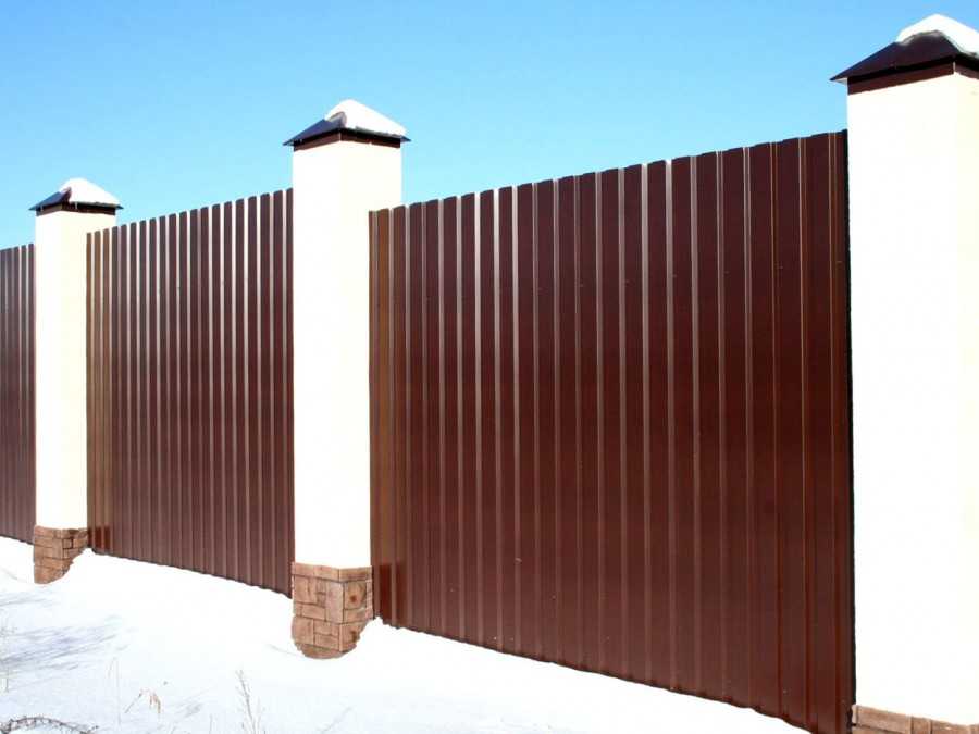 - Защитное покрытие. На профиль наносят специальный слой, сохраняющий металл от коррозии. Такому забору не будет страшен ни снег, ни дожди.