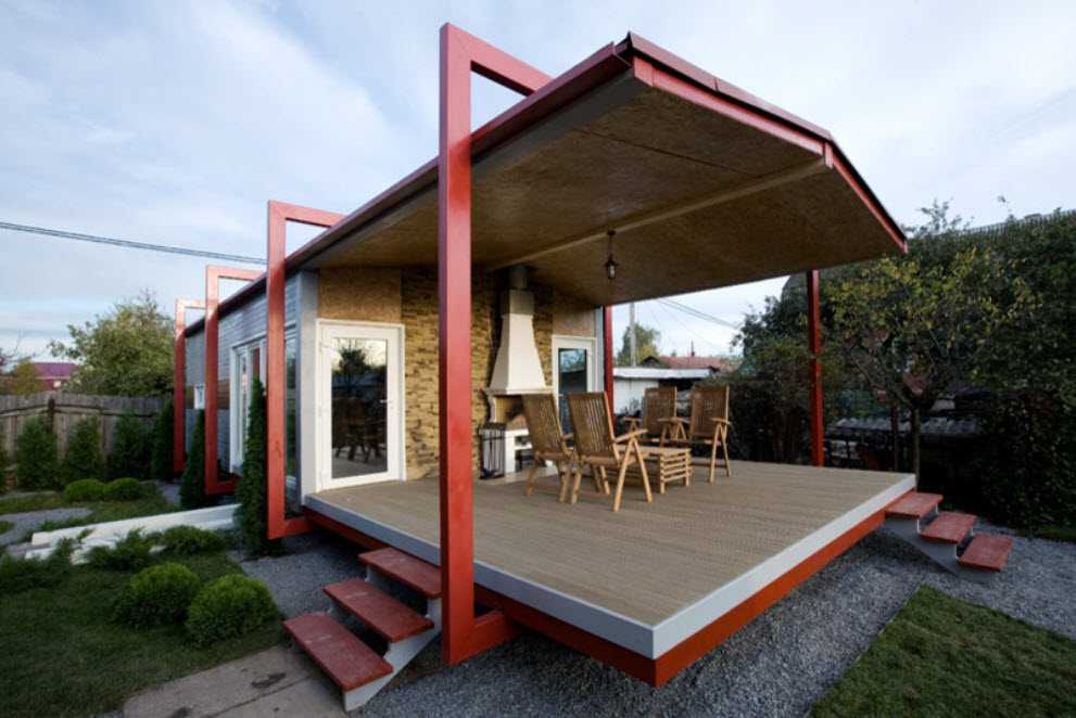 Недостаток такого строения лишь в том, что он нуждается в утеплении, если вы планируете там проживать зимой. Достоинства в простоте и быстроте постройки, буквально в течение недели, и многообразие архитектурных решений.