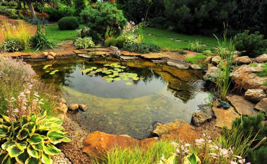 Искусственный водоем на любом участке является его центральным украшением. Декором пруда помимо растений являются камни, статуэтки, интересные фигурки, небольшие деревца. С помощью таких элементов можно создать уникальное произведение искусства.