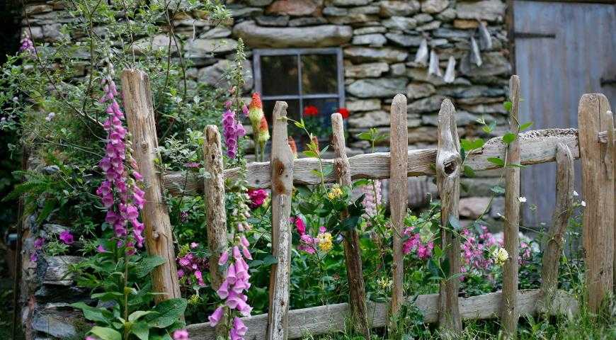 В деревне забор — штакетник или плетень, увитый зеленью (хмелем, диким виноградом). Пригодны для его основы бревна, чурбаки, а для плетения — ветви. Из дерева легко изготовить перголу, скамейки. Интересна и уютна беседка из необработанных досок и под соломенной крышей. Коваными деталями украшают и укрепляют ворота. А опору металлической перголы лучше закрыть вьющимися фасолью, горохом, ипомеей или многолетниками.