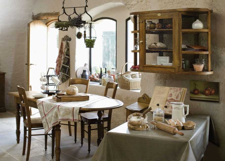 Во французском кантри присутствует контраст между богато украшенными, сложными и элегантными деталями и грубыми, деревенскими, необтесанными, — который служит большим очарованием стиля.