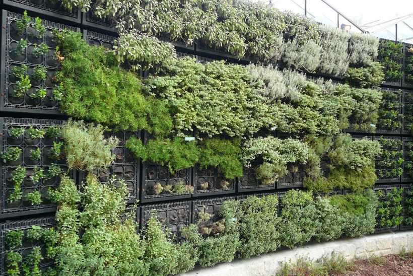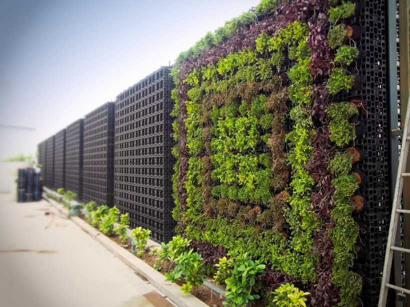 Модульного типа. Для создания живой стены необходимо установить фитомодули — специальные стеллажи с ячейками и дренажной системой. Фитомодули для вертикального озеленения представляют собой отдельные элементы (по типу горшков), которые скрепляются после посадки.