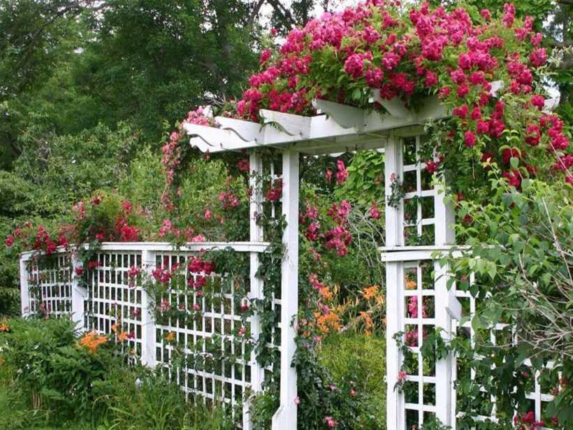 Арки по своей сути те же шпалеры, но выполненные в форме арки. Они могут просто стоять на участке, а могут быть декоративным входом в беседку или какую-либо часть двора.