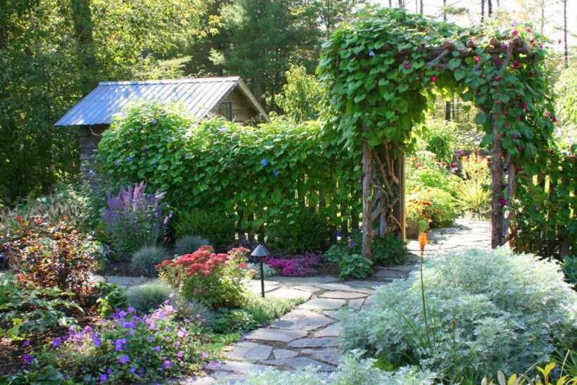 Лозы, лианы и другие вьющиеся растения подходят для вертикального озеленения двора. Ими можно скрыть неприглядные хозяйственные постройки, заборы, столбы, стены дома, создать на территории сада тенистые беседки и места для уединения.
