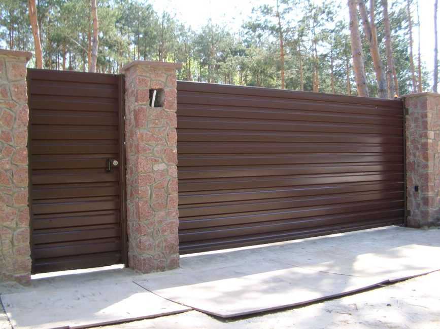 Профилированные металлические листы применяются не только в строительстве заборной стены, но и при изготовлении калиток и ворот.
