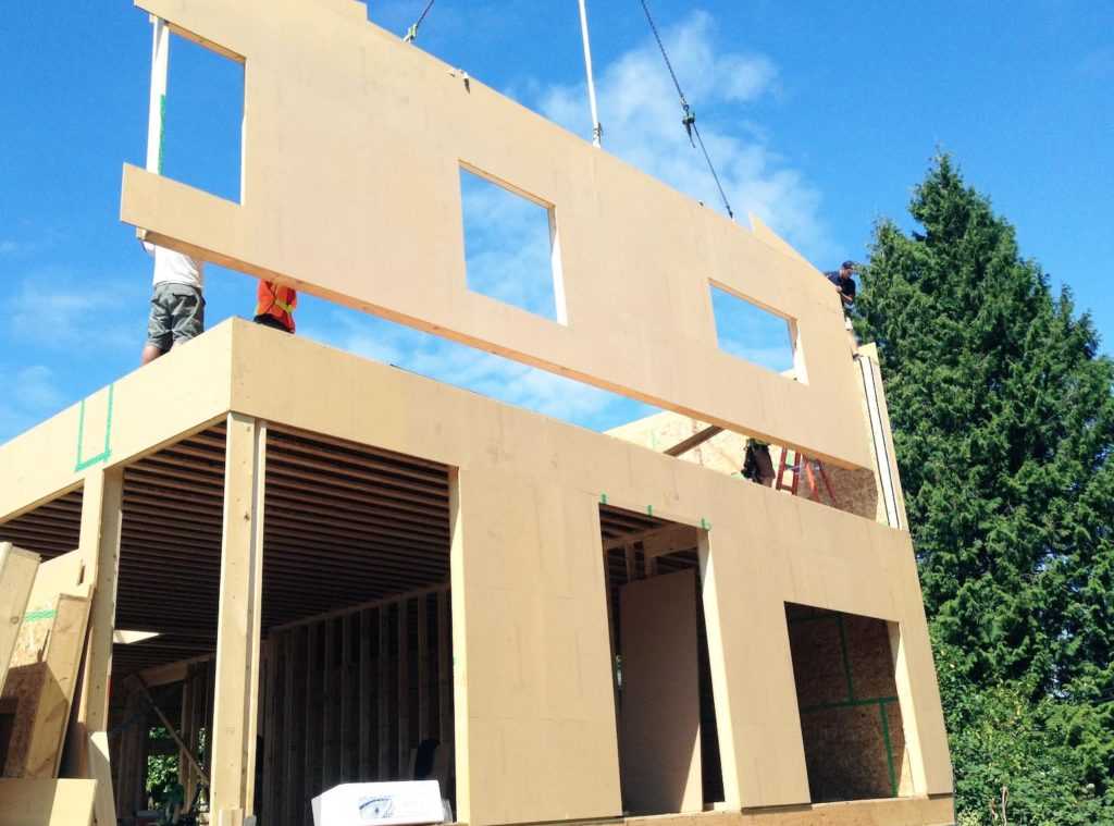 В первую очередь следует рассказать о канадской технологии, которая еще называется системой «Платформа». Подобную технологию чаще всего применяют для строительства жилья на территории Канады и стран Евросоюза. Щиты могут собираться, как на месте монтажа каркаса, так и в производственных помещениях.