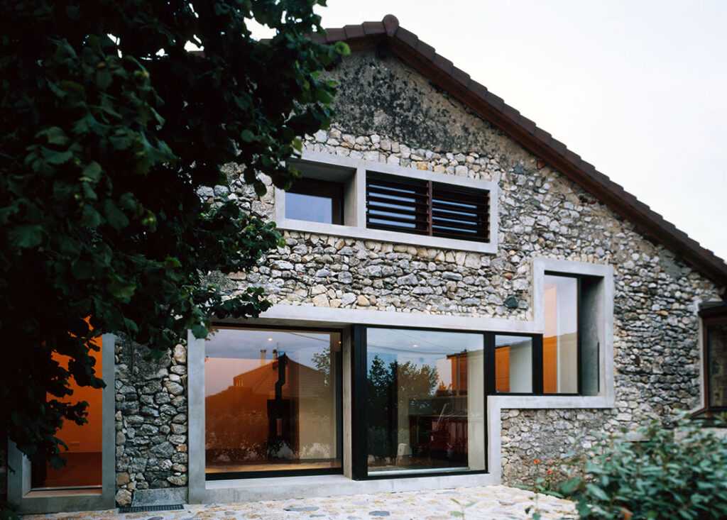 Фото дома в стиле кубизма, сочетающего нехарактерные для этого стиля традиционные материалы