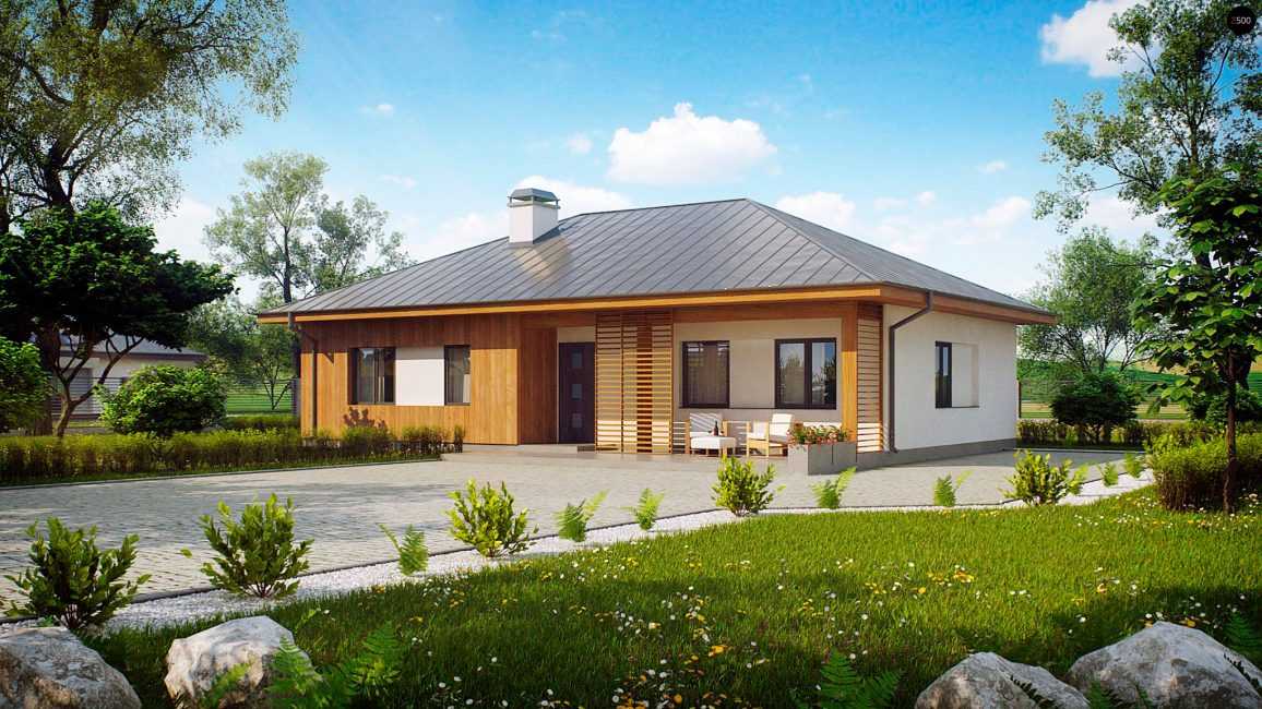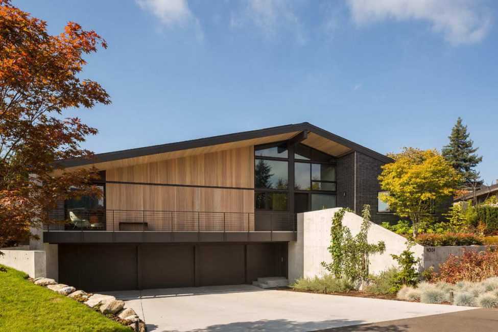 Фото 27-31. Идеи дизайна коттеджа с фасадом из белого материала с коричневыми вставками