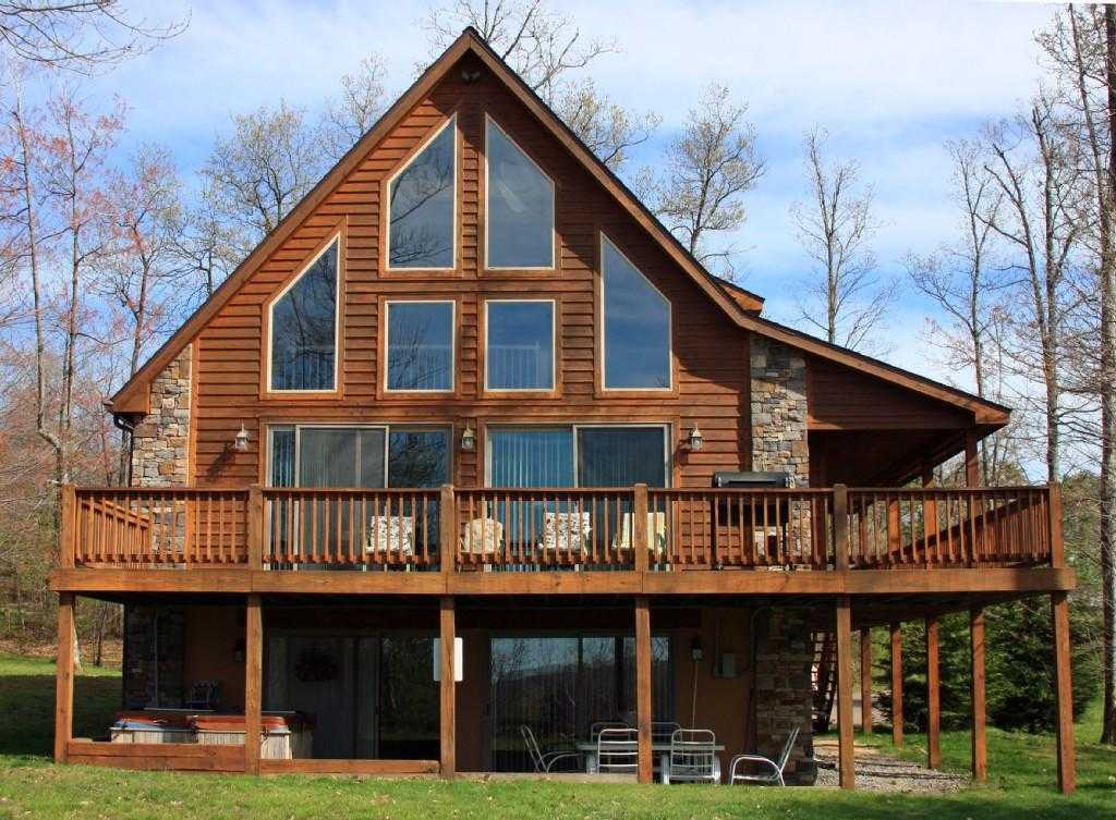 Когда дом с самого начала сооружался в альпийской стилистике, верхний этаж облицовывать не нужно, потому как возводится он из природной древесины (бруса или бревна).