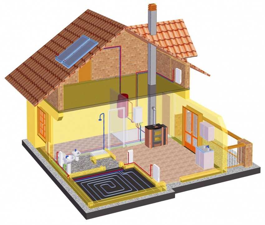 К необходимым коммуникациям относятся: водоснабжение, отопление, электричество. Для отопления дома можно использовать газовый котел. Благодаря ему в зимнее время можно существенно снизить расходы на обогрев жилья.