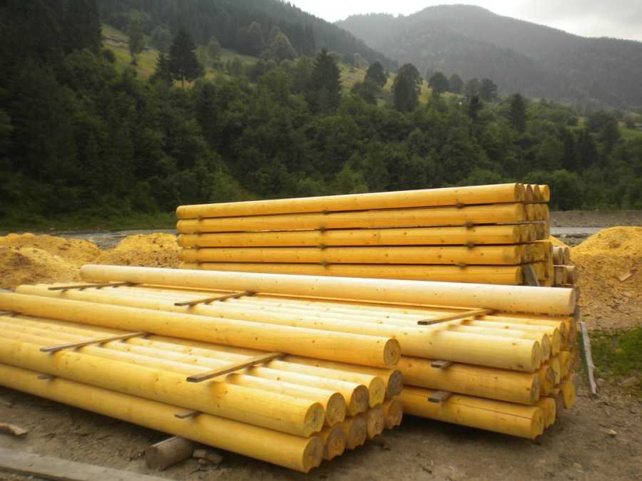 - Изготовитель должен обрабатывать материал специальными составами. К ним относятся, например, антисептики, которые позволяют защитить бревно от неблагоприятных воздействий внешней среды, появления плесени и вредителей. Это существенно продлить срок службы материала, увеличит его надежность и устойчивость к износу.