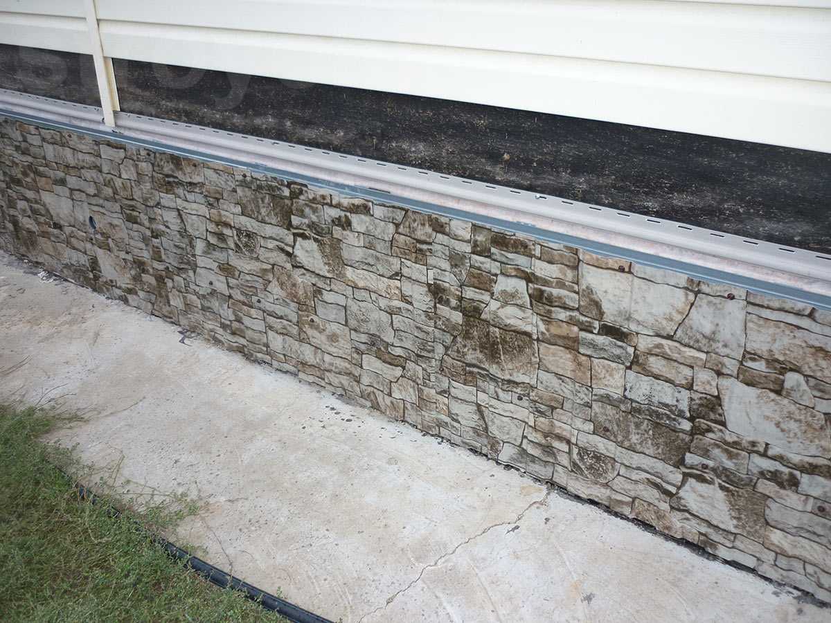 Было решено снять нижние панели винилового сайдинга, удалить мостики холода в местах примыкания стеновых плит к перекрытию первого этажа и обшить фундамент профлистом под камень.