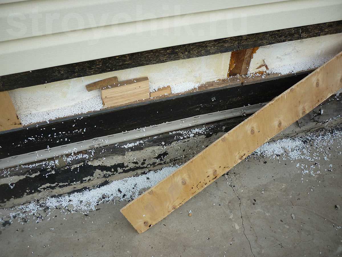Предварительно перекрыта возможность доступа мышей к пенополистиролу, затем фундамент обшит профлистом