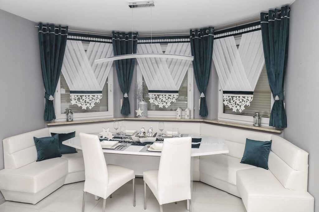 Для современной эргономичной кухни эркер станет настоящим подарком, ведь в нем с легкостью разместится полноценная обеденная зона. В итоге, домовладелец станет обладателем настоящей столовой, что в наше время доступно не каждому. Оригинально выглядит столовая зона, в которой по периметру полукруглого выступа установлена мягкая скамья, либо посадочными местами служит подоконники.