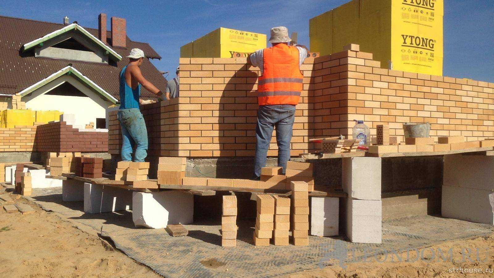 - Простота и скорость возведения. Кирпичные стены требуют кладочников более высокой квалификации. Напротив, стены из газо- и пенобетонных блоков быстро возводятся благодаря их легкости и большим размерам даже начинающими строителями. Рекордсменом по скорости возведения является монолитное строительство, когда для стен собирается опалубка необходимой высоты и в нее заливается бетон.