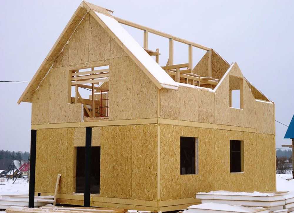 При строительстве каркасных домов собирают деревянный каркас, затем прокладывают утеплитель, пароизоляцию и обшивают панелями или вагонкой. Другой вариант – использование СИП-панелей, в которых утеплитель уже вставлен между плитами ОСП по принципу сэндвича. Строительство не привязано к сезону, сроки не «плывут» из-за плохой погоды.