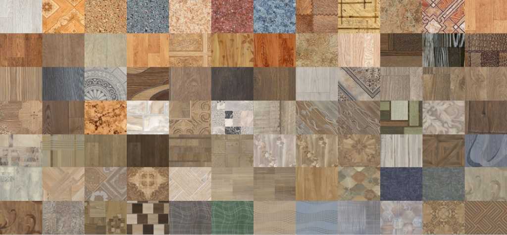 - Огромный ассортимент продукции. Кроме рулонных материалов здесь присутствует плитка линолеума, полосы и комбинированные изделия, плиты. При выборе линолеума необходимо знать какая толщина подойдёт для конкретной цели. В обычных жилых помещениях используют тонкие покрытия 21-23 класса.
