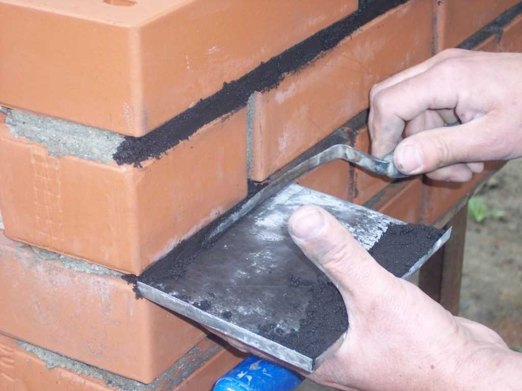 Швы кладки керамического кирпича расшивают до момента схватывания раствора.Порядок расшивки такой: