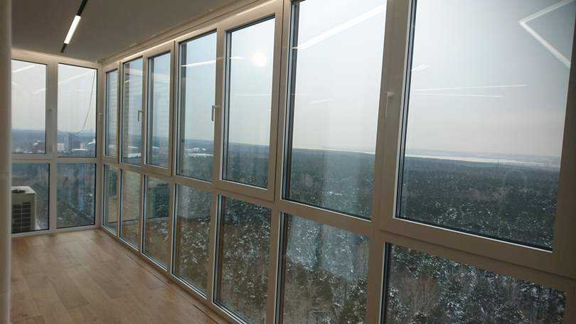 - Установка рам на всю высоту балкона. Для остекления балконной площадки парапет демонтируют, а оконный проем частично тонируют или используют другой непрозрачный материал.