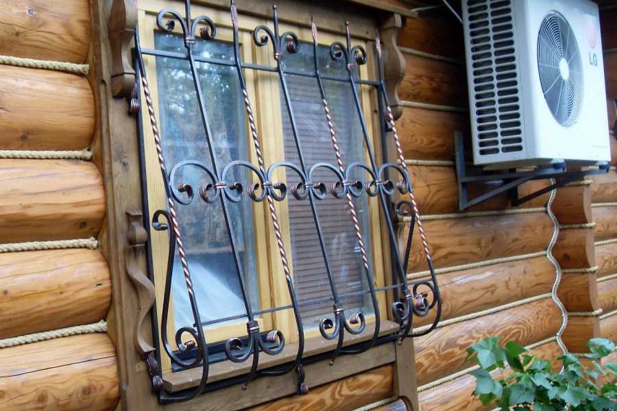 Если требуется установить решетку на окна дачного домика, тогда элементы сварки и ковки вряд ли понадобятся. Особенно если дом простой, деревянный. В таком варианте вертикальные детали располагаются в значительном отдалении друг от друга, так что естественное освещение затеняться не будет.