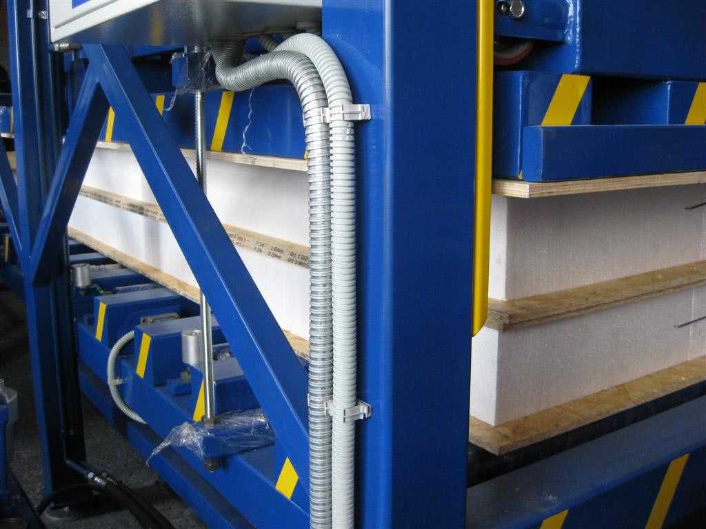 - Заготовка поступает в промышленный пресс и выдерживается там до полной полимеризации (схватывания) клея. Компьютер контролирует время, давление и влажность; в результате получается материал со стандартными свойствами.