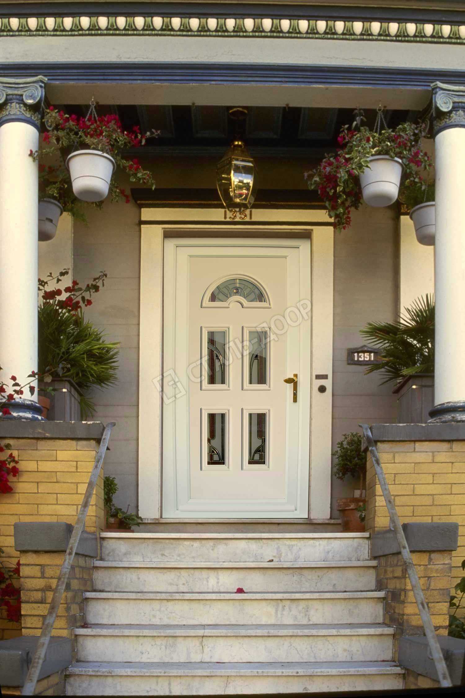 Дверь в коттедж с фрамугой из массива