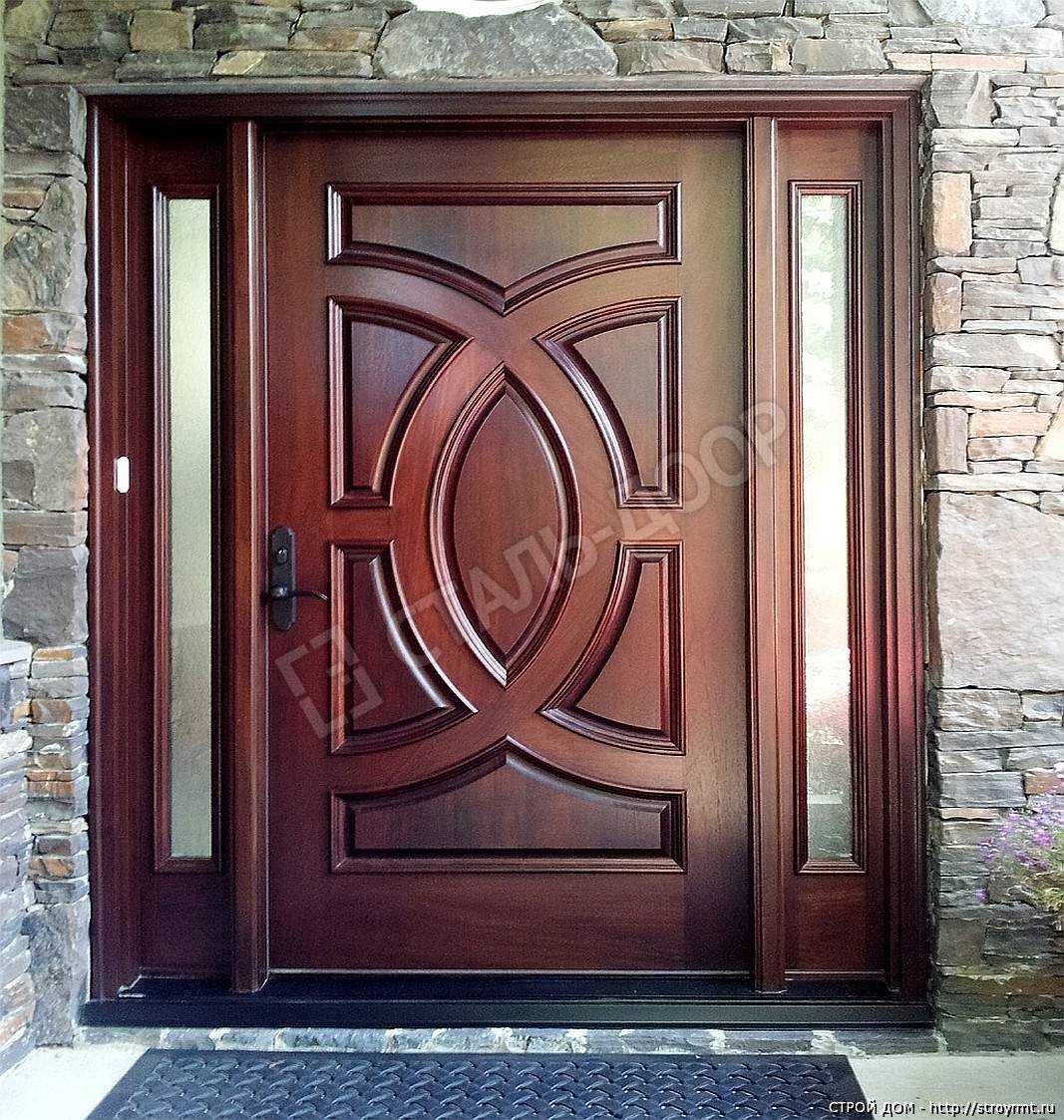 Входная дверь в частный дом с отделкой массивом
