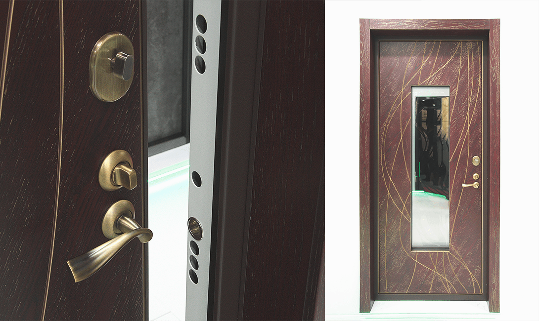 Дополнительно возможно применение терморазрыва в местах соединения внутренней и внешней ручек, а также установка подпружиненных шторок для перекрытия ключевины замков.