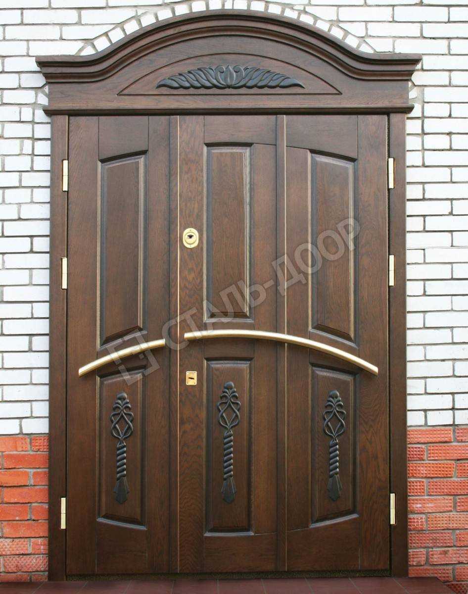 Двустворчатая дверь в коттедж из массива