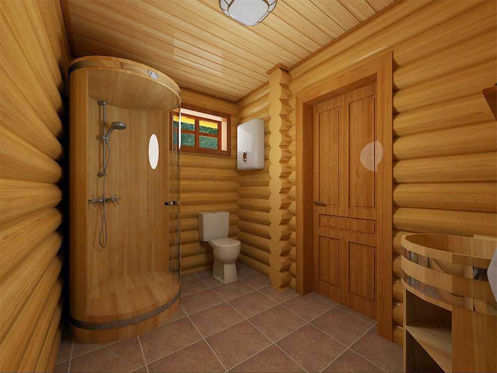 Для строительства таких домов используют оцилиндрованные бревна, профилированный брус или изделия ручной рубки. По своим фактурным свойствам, дерево очень ранимо к присутствию влаги. Под ее воздействием оно может деформироваться и менять собственную форму. Поэтому, обустраивая ванную или санузел в деревянном доме, необходимо учесть решение определенных специфических вопросов: