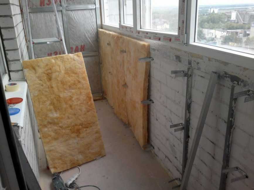 Если требуется утепление, то материал режется так, чтобы куски были шире, чем расстояние между брусками. Это позволит заполнять полости очень плотно, при этом не закрепляя минеральную вату дюбелями. Если вы будете использовать пенопласт, то все стыки лучше заполнить монтажной пеной, она будет служить и как клеевой состав, и как теплоизолятор;