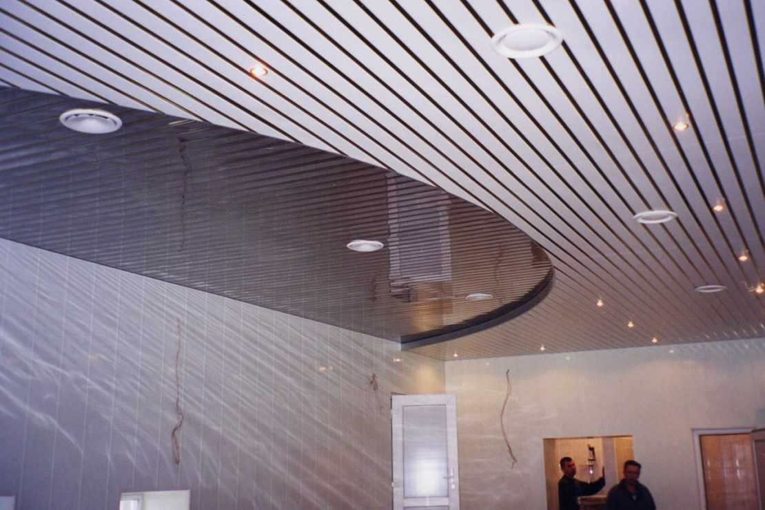 В зависимости от материала, из которого изготовлены рейки, такие потолки бывают алюминиевые, стальные и пластиковые. Наибольшей популярностью пользуются алюминиевые рейки, которые отличаются легкостью, прочностью и устойчивостью к коррозии. Изделия из алюминия негорючие, устойчивы к механическим повреждениям, не боятся воды.