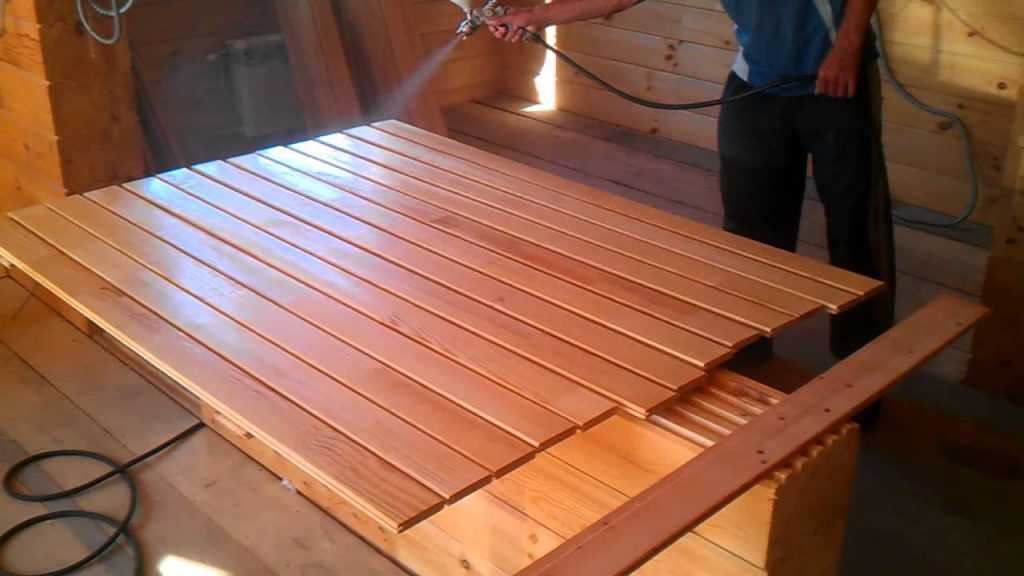 С финишной обработкой нужно быть предельно аккуратными. Не все составы подходят для бани. Нельзя использовать лаки, поскольку при нагревании вредные вещества будут выделяться в воздух. Некоторые вообще предпочитают не обрабатывать покрытие в парилке. Но если все же есть желание защитить дерево, то нужно использовать составы на вводной основе или с использованием воска.
