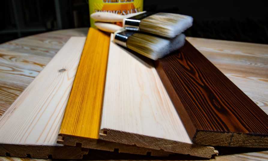 - Доски покрывают пропиткой для древесины на водной основе или красящим составом.