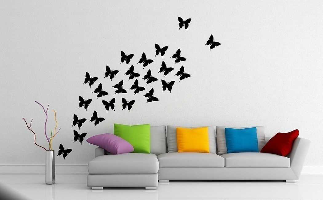С краской. Бабочек можно нарисовать на стенах акриловыми красками. Но если вы не чувствуете в себе дара художника и хоть какой-нибудь предрасположенности к подобному виду творчества, то лучше выбрать вариант попроще.