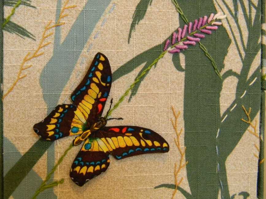 Выполненные из нескольких слоев разного цвета и размера, они смотрятся очень живо и по-настоящему объемно. Обычно склеивают только тельца бабочек, крылья же остаются свободны и отгибаются под разным углом.