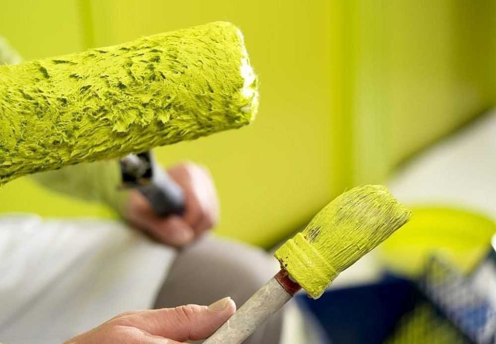 В работе используются валик, губка или баллон. Кисточку использовать нежелательно. Лучше — валик: он равномерно распределит краску по поверхности. Что делать и как красить: