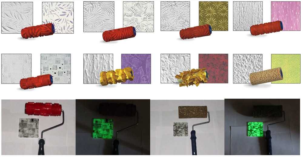 Несмотря на то что инструменты для создания узоров на стенах сегодня есть в открытой продаже, многие создают узорные валики своими руками, придумывая при этом уникальный рисунок. Стандартная конструкция простая – два цилиндра на ручке, при этом на первом есть объемный узор, а второй служит для нанесения краски. Более усовершенствованные инструменты имеют резервуары, в которые предварительно заливается рекомендуемое количество краски, которая потом подается на рисунок.