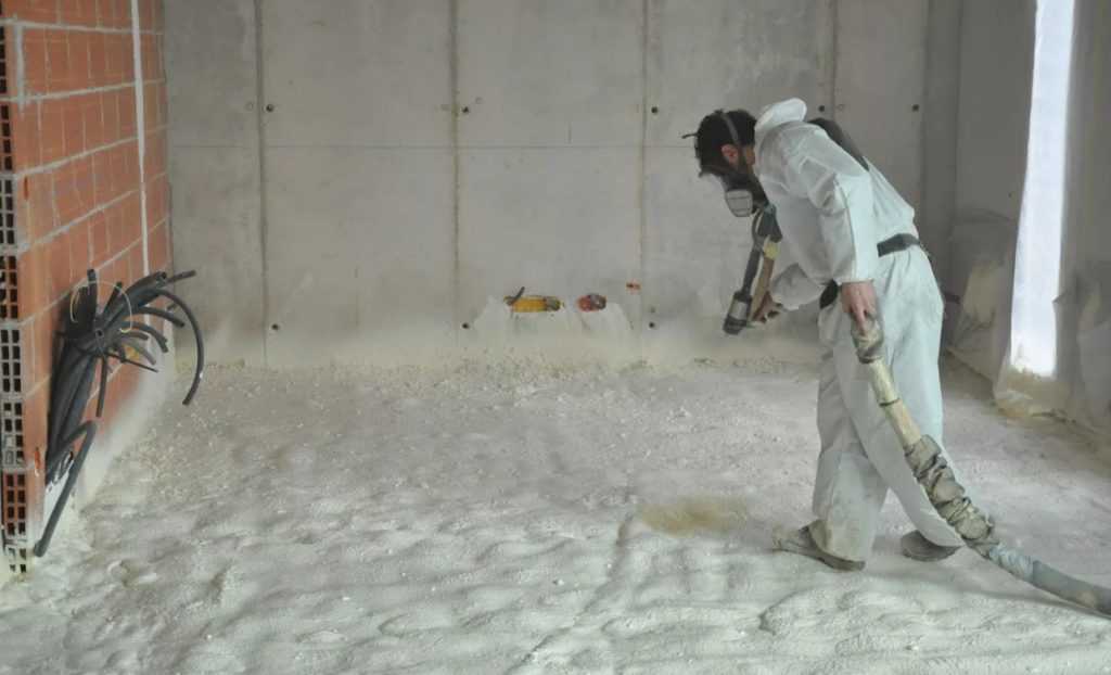 - Состав наносится с помощью установки, которая вспенивает его и равномерно распределяет. Слой можно делать любым, что очень удобно. Но проводить работу может только специалист в специальном снаряжении, поэтому придется оплатить и его услуги.