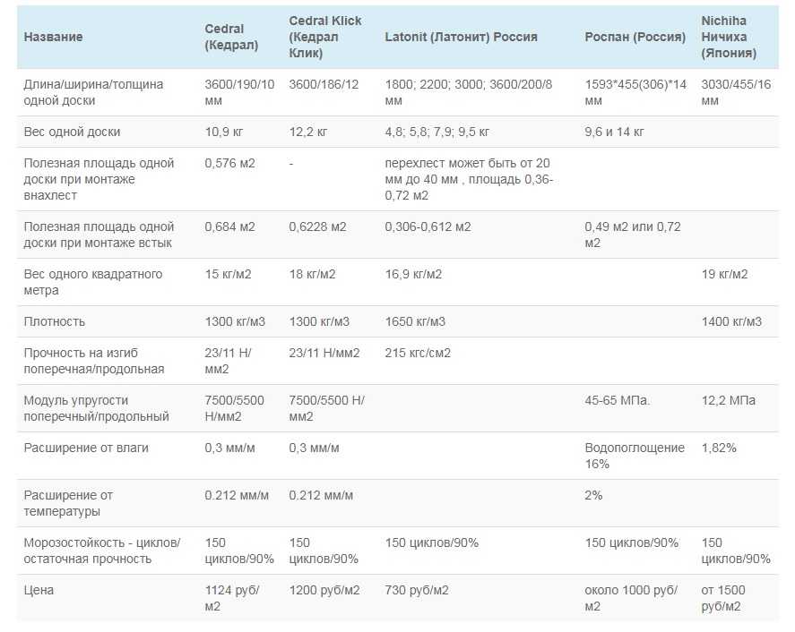 Характеристики и цены фасадного фибросайдинга разных производителей
